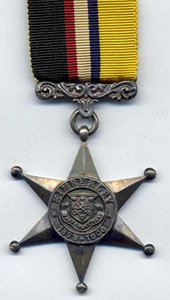 ![]() Transport Medal with S. AFRICA 1899-1902 Clasp The obverse of the medal bears the effigy of King Edward VII in Royal Navy uniform, with the curved inscription EDWARDVS VII REX IMPERATOR. The reverse depicts HMS Ophir beneath a map of the world with the curved inscription in Latin OB PATRIAM MILITIBUS PER MARE TRANSVECTIS ADJUTAM (for services rendered in transporting troops by sea). Approximately 1,822 medals were issued (less than 200 with two clasps). St. John Ambulance Brigade Medal The St. John Ambulance Brigade men who served in South Africa were awarded a bronze medal, which bore the uncrowned head of Edward VII. Their service numbers, ranks, initials, names and units were engraved on the rim in large block letters. They also qualified for the Queen's South Africa Medal with details impressed on the rim and the unit shown as St John Ambulance Brigade. Both medals were awarded posthumously. The medal was sanctioned for wearing in uniform on January 26, 1904. Approximately 1,871 medals were issued. Of these, some 20 were issued to notable people and 40 were issued to those involved in training in the UK. As these 60 people did not leave the UK, they were not eligible to receive the QSA. ![]() St. John Ambulance Brigade Medal Unofficial Medals Kimberley Star This was an unofficial medal awarded by the mayor and town council to the defenders of Kimberley against the Boer Forces. It is not an official award and cannot be worn on the uniform with official campaign medals. Approximately 5,000 stars were awarded. The silver medal is in the shape of a six-pointed star with finial balls at the end of each point and a raised circular centre with the Kimberley town shield. A circular inscription KIMBERLEY 1899-1900 is curved around the shield. The reverse is flat and is inscribed on three lines with MAYOR'S SIEGE MEDAL 1900. The ornate suspender is sewn directly to the ribbon and attached to the star by a small metal ring. The top edge of the ribbon has a silver clasp.