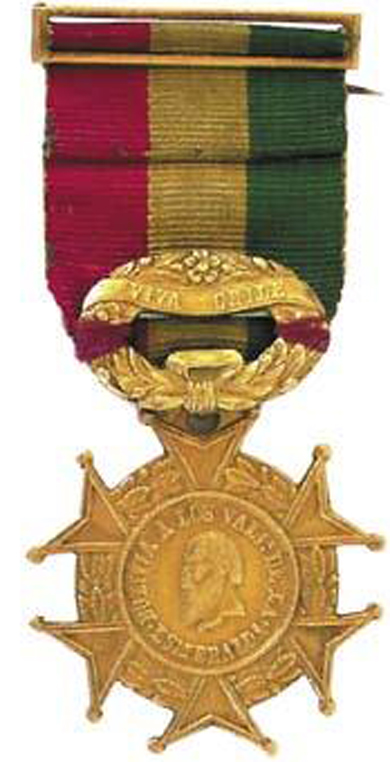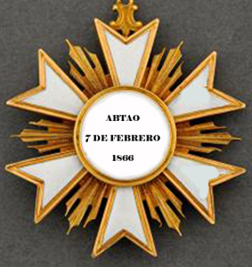 ![]() GOLD MEDAL for PAPUDO 1865 and CROSS for ABTAO 1866 CROSS for ABTAO 1866 Abtao Cove is near Antofagasta, a part of Bolivia in 1866. The decoration for this engagement with the Spanish naval forces, is a gold or silver cross of six double-pointed arms, enameled white and with three gold rays in each of the angles. The white central medallion on the obverse is inscribed, ABTAO 7 DE FEBRERO 1866, and the reverse is inscribed, LA PATRIA RECONCIDA. MEDAL for ABTAO This is a 32 x 26 mm oval, gold, silver or bronze medal. The obverse displays a shield superimposed on the flags of Bolivia, Chile and Peru, and trophies of war. The shield is inscribed, A LOS VENCEDORES EN ABTAO. The reverse is inscribed, 7 DE FEBRERO 1866, 57 CANONES CONTRA 92. It was awarded for the relief of Abtao and for the defeat of two Spanish ships, the Blanca and Villa de Madrid. ![]() SILVER MEDAL for ABTAO 1866 ![]() BRONZE MEDAL for ABTAO 1866 PERUVIAN MEDAL for DEFENSE of CALLAO This Peruvian medal was also awarded to Chilean forces, who assisted in the defense of Callao. It is a five-armed red enamel star with finial ball tips and a green enamel wreath suspension for the gold class and a ring suspension for the silver class. The white enamel center features the fort’s tower surrounded by the inscription, CALLAO 2 DE MAYO 1866. The reverse is otherwise blank except for a white enamel central ring, inscribed, 50 CANONES CONTRA 300. It was awarded to Chilean forces with their red, blue and white ribbon, the national colors of Chile. ![]() PERUVIAN MEDAL for DEFENSE of CALLAO