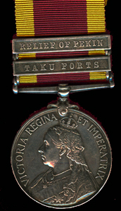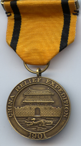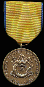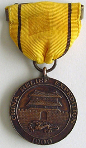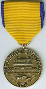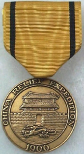 ![]() The USMC and USN Expeditionary Medals were Awarded for the lead-up to the Boxer Rebellion: Tientsin (12/4/1894 to 5/16/1895 and Chefoo 3/1 to 3/18/1895 and the USN Medal only for Peiping or Tientsin 11/4/1898 to 3/13/1899
