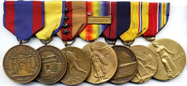 ![]() USN/MC China Relief Expedition Medal 3rd Ribbon (blue stripes) and US Army China Campaign Medal